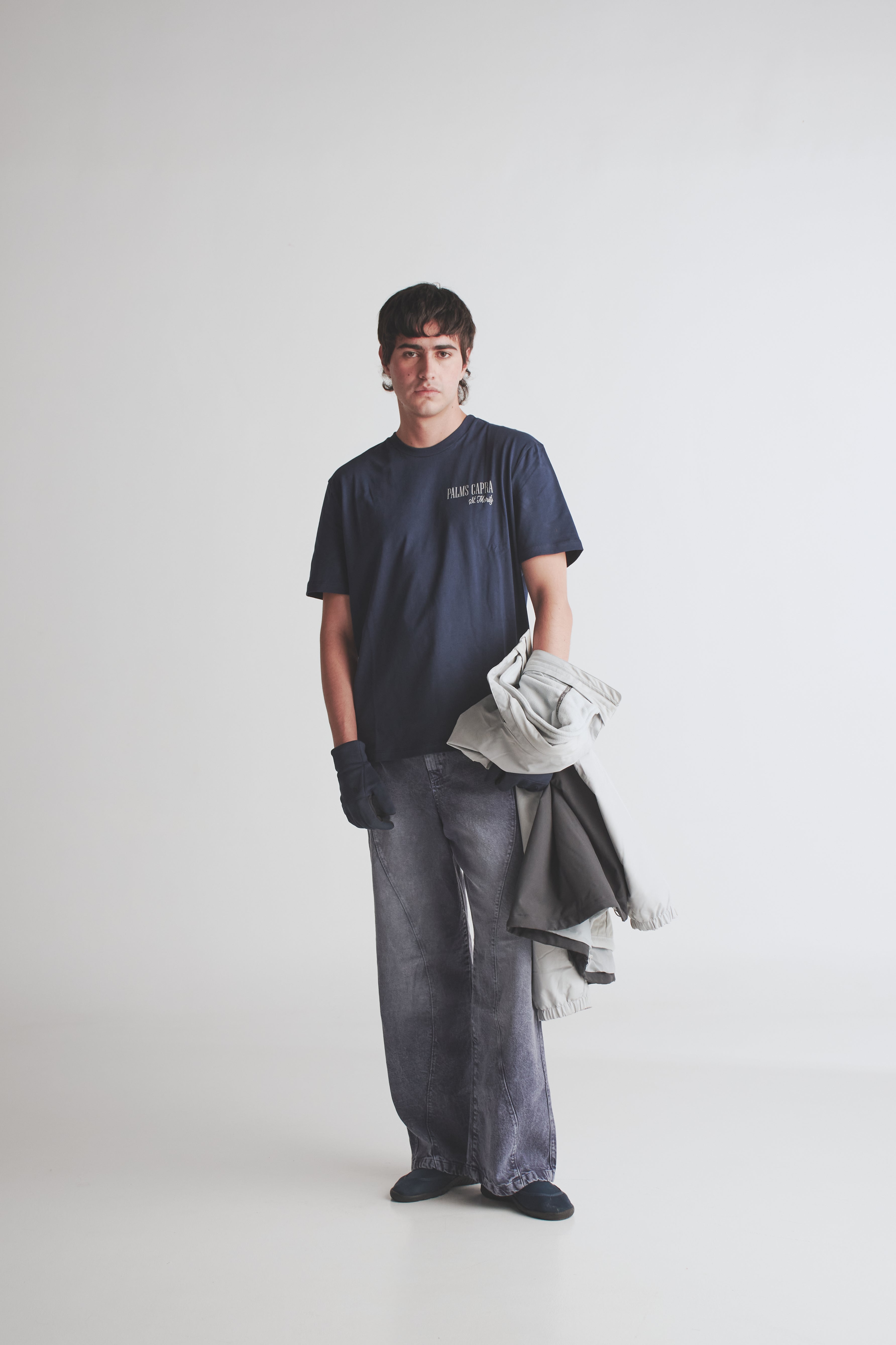- El modelo mide 1.90cm y usa talla XL