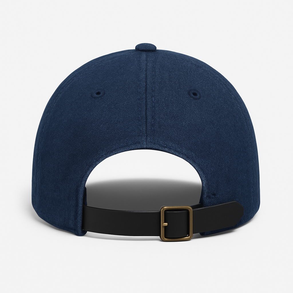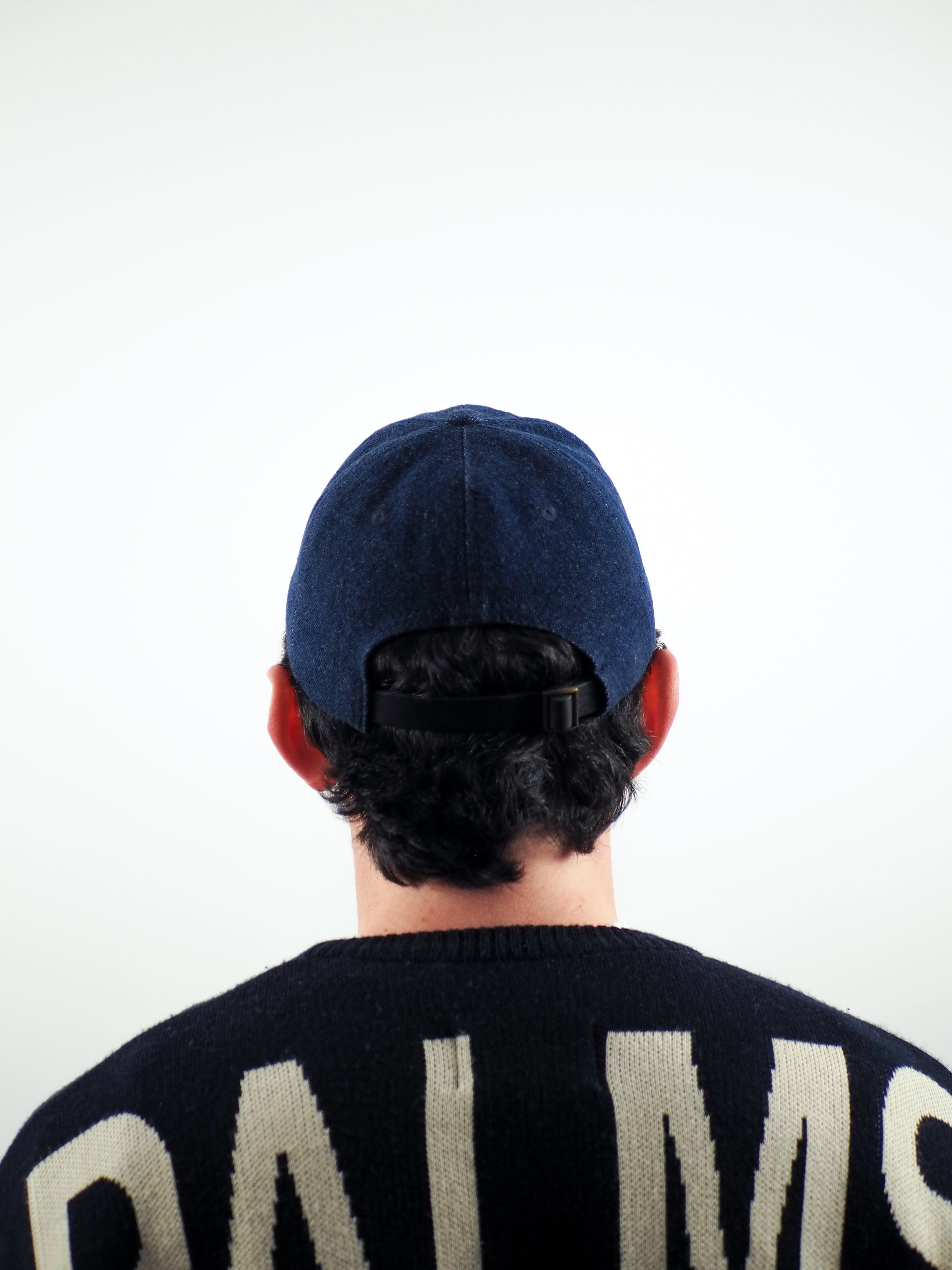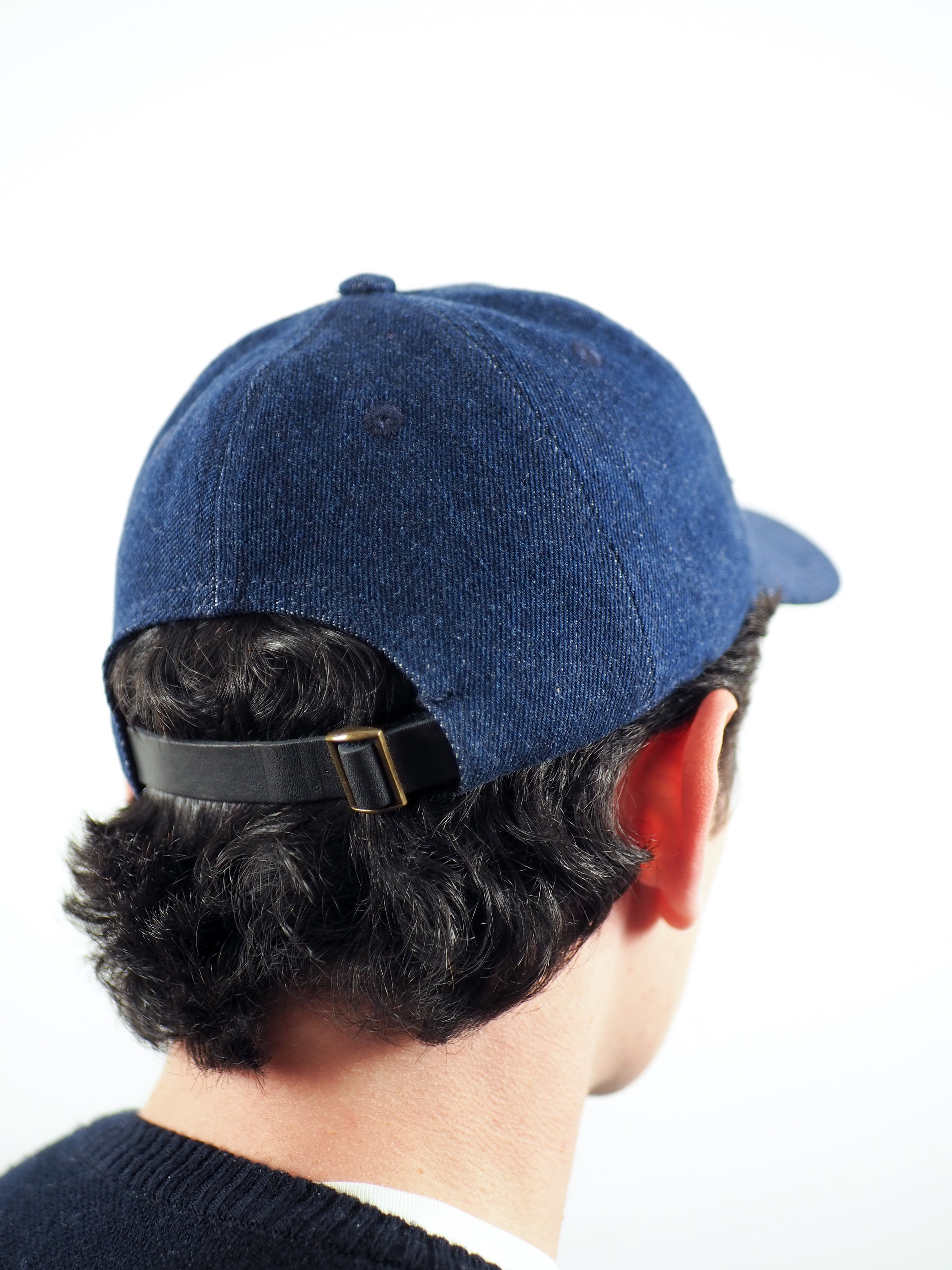 Gorra en denim Correa de cuero negra Azul oscuro 6 paneles Letras bordadas
