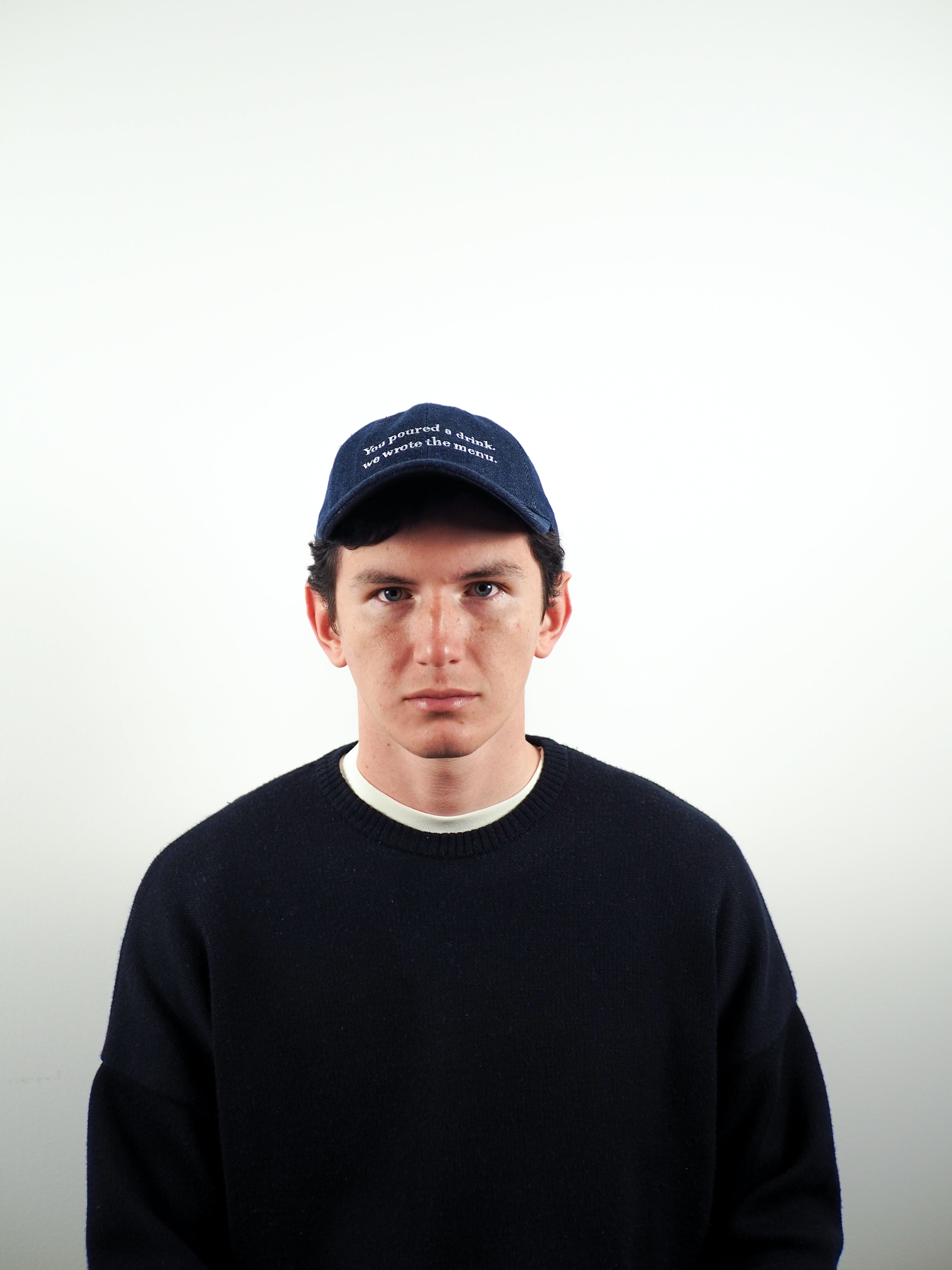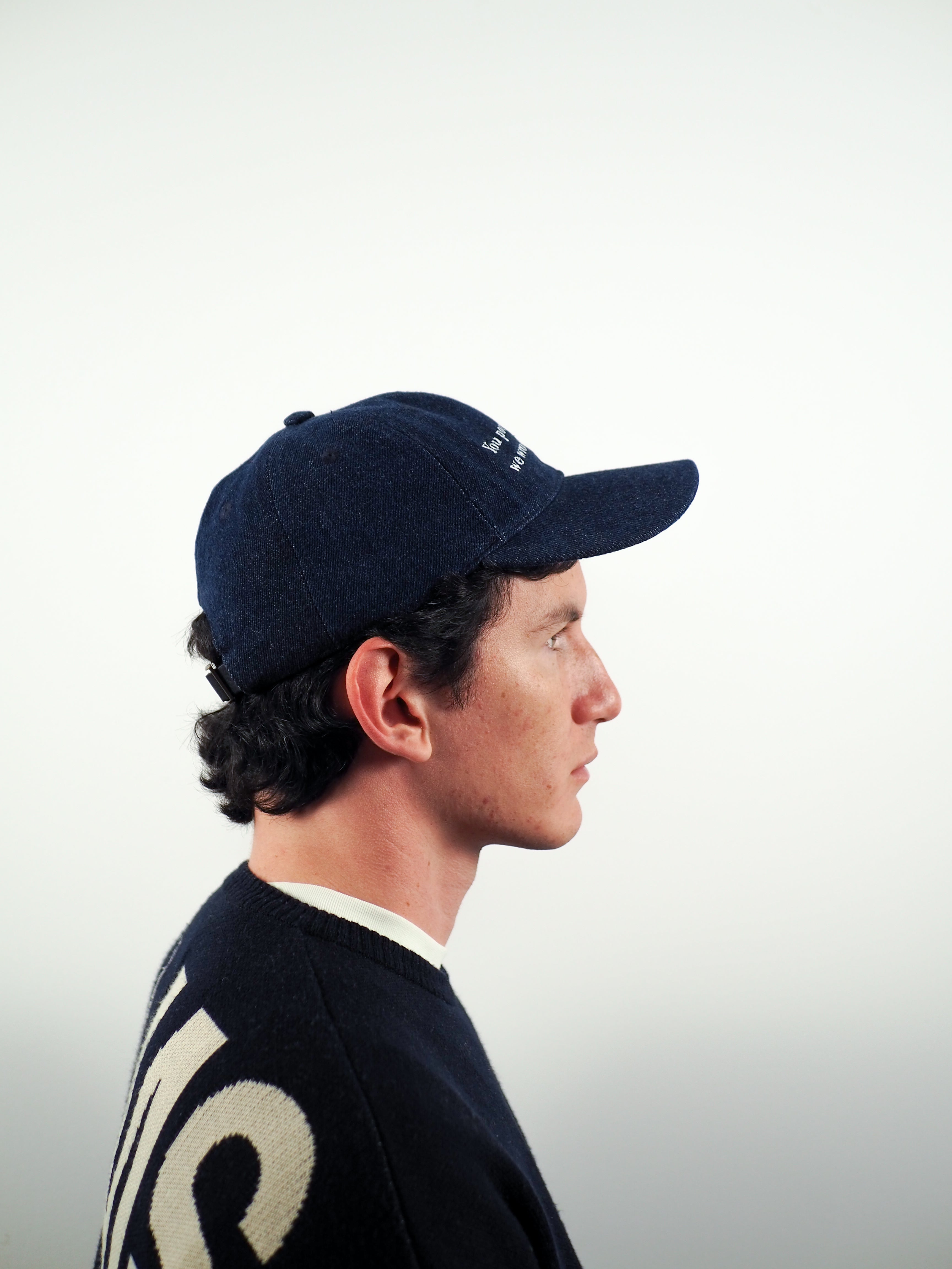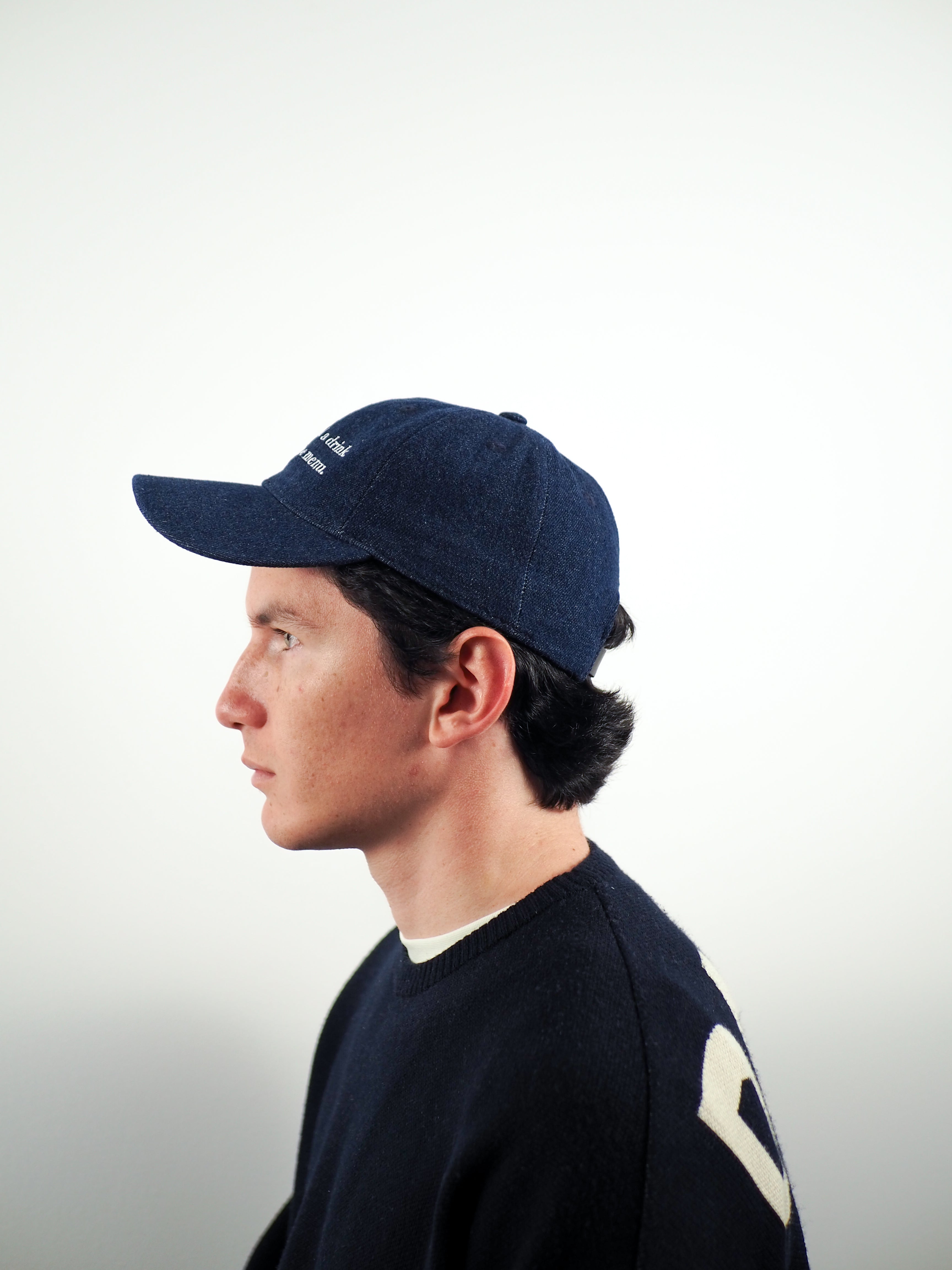 Gorra en denim Correa de cuero negra Azul oscuro 6 paneles Letras bordadas